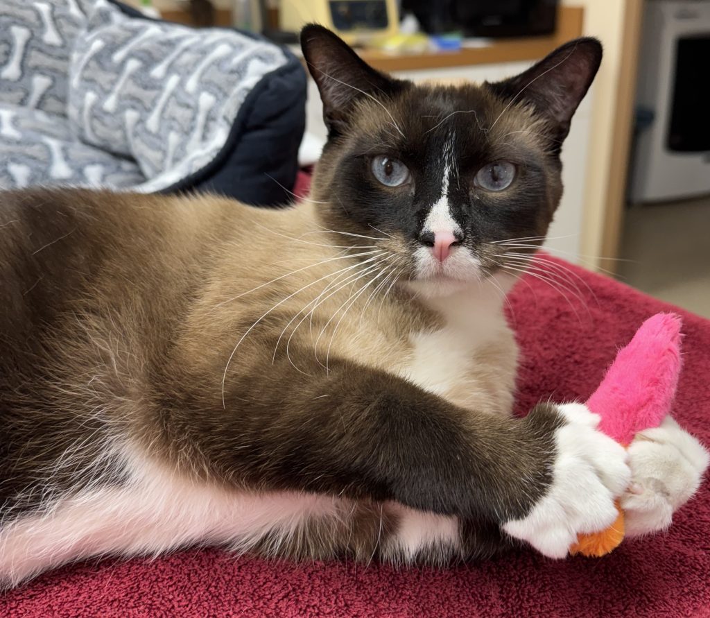 First up, meet Roman. Think of him as the clinic’s own zen master—sweet, calm, and collected. Roman exudes that peaceful vibe that makes you want to slow down and take a deep breath. But don’t mistake his laid-back demeanor for laziness—Roman’s had his moments of adventure. Whether he’s perched in his normal spot on the counter overseeing the patients or he is taking a cat nap in his favorite spot, he moves through the day with a quiet curiosity that’s utterly endearing.