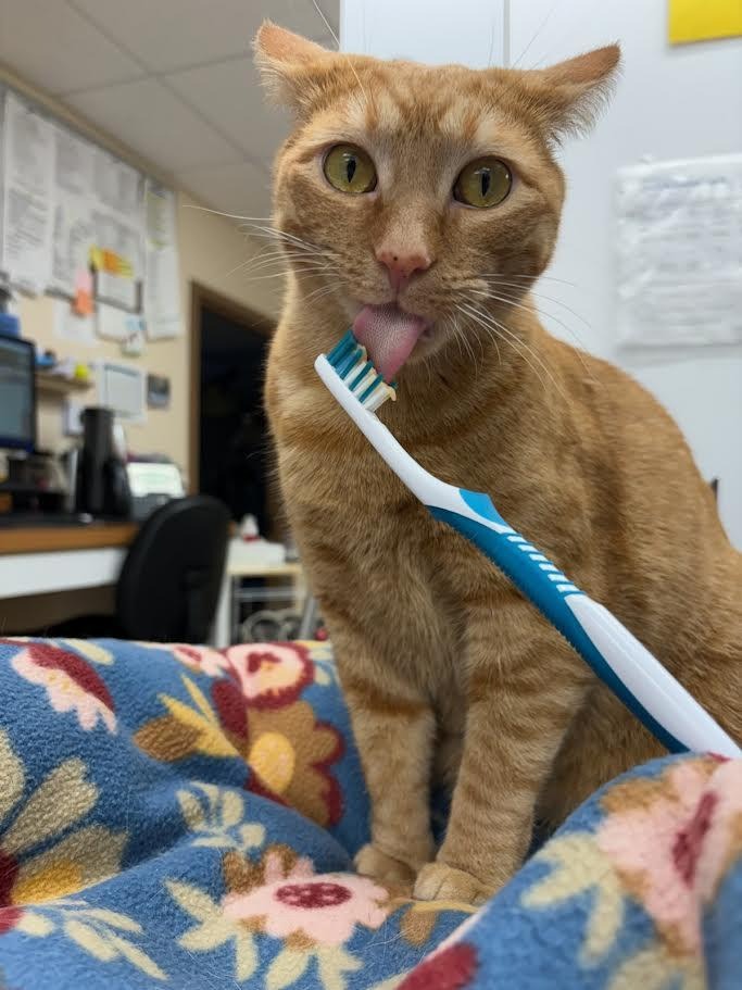 Hello there, fellow pet lovers! This month, we’re honing in on something that often slips under the radar but is incredibly important for our furry friends: dental health. And who better to tell you all about it than our very own clinic cats, Roman and Miles? These two whiskered residents have some insights (and a bit of feline flair) on why keeping those pearly whites clean matters.